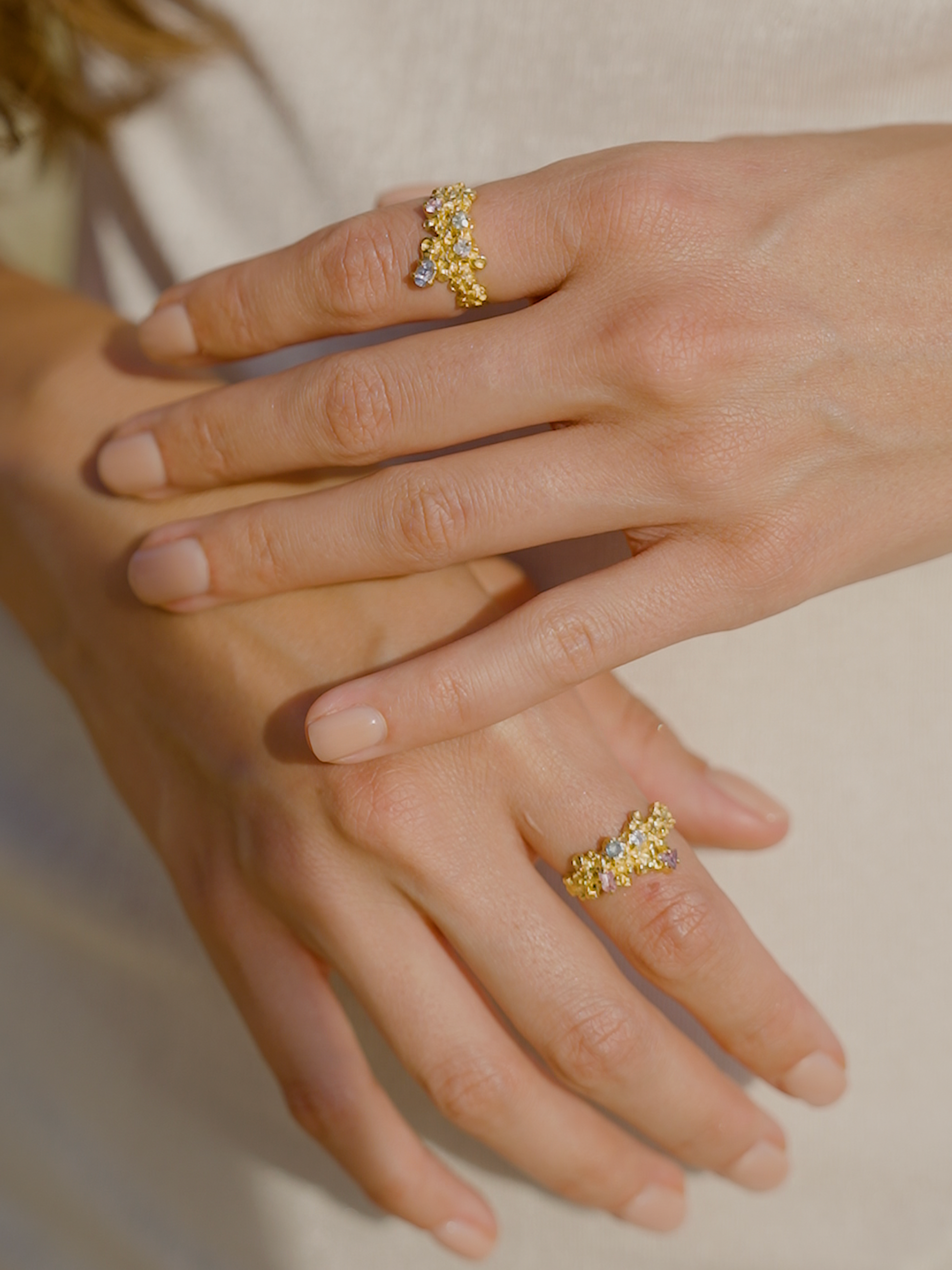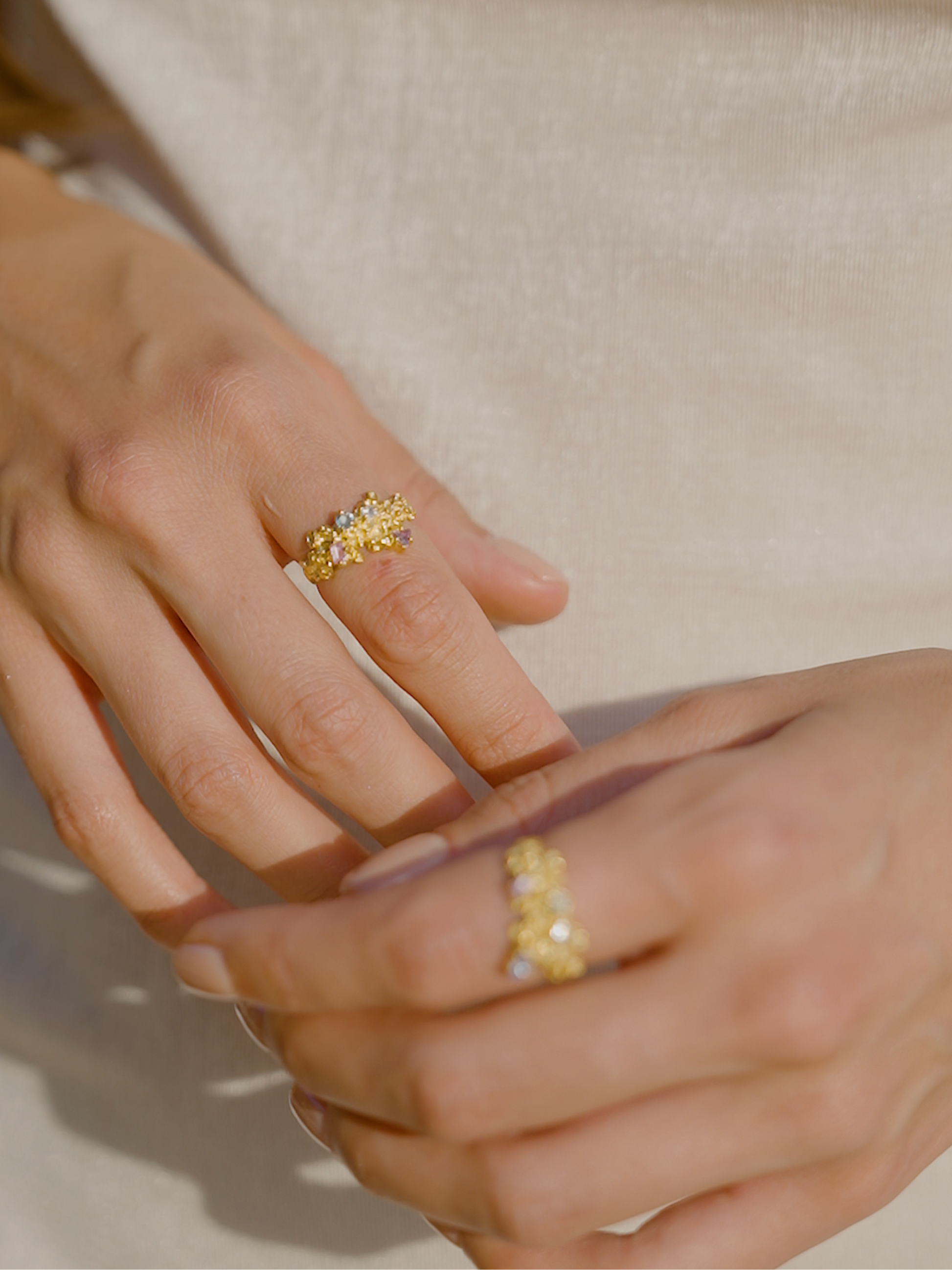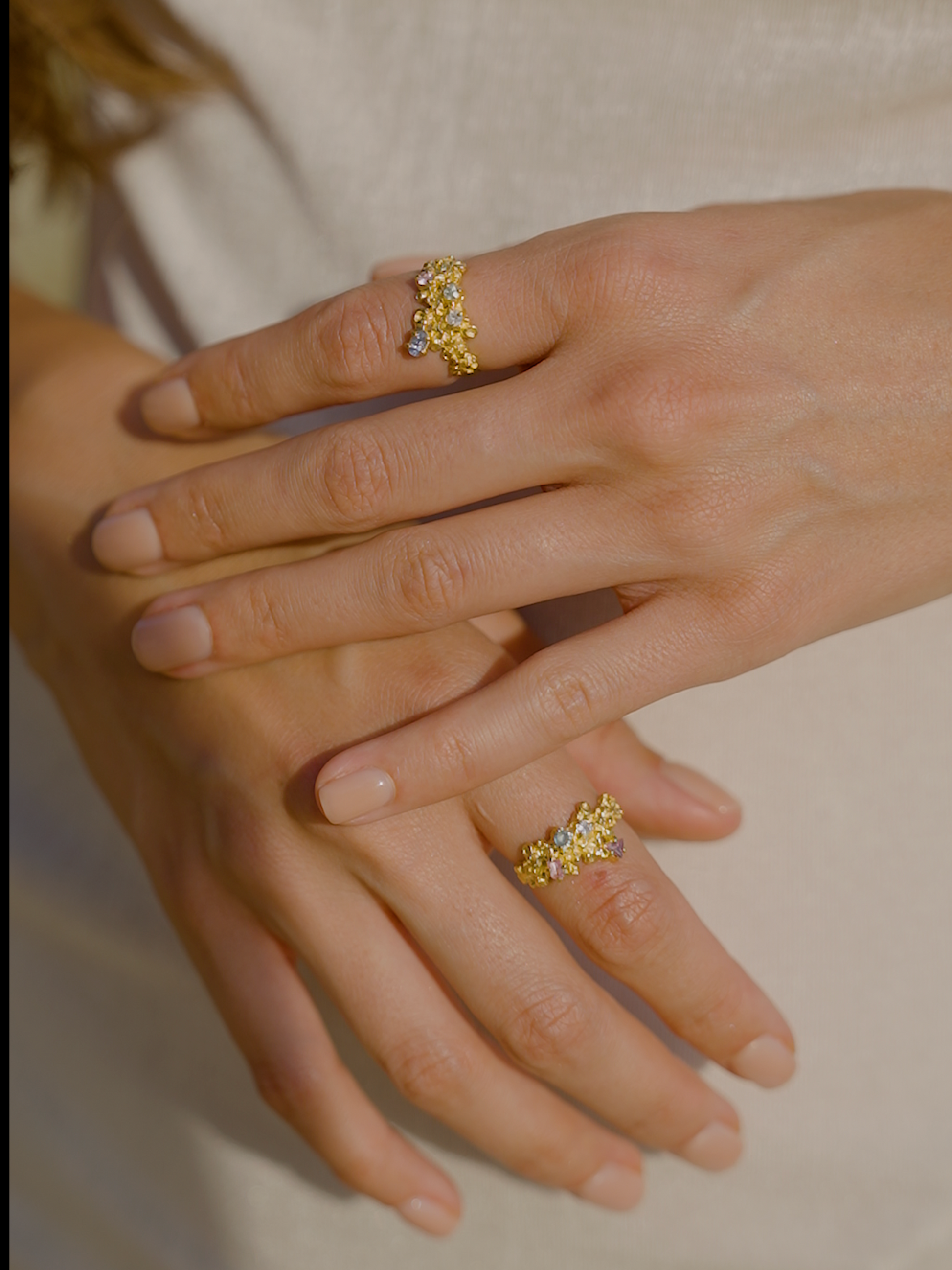 Coral Ring Gold #18 with candy coloured Sapphires - size 7