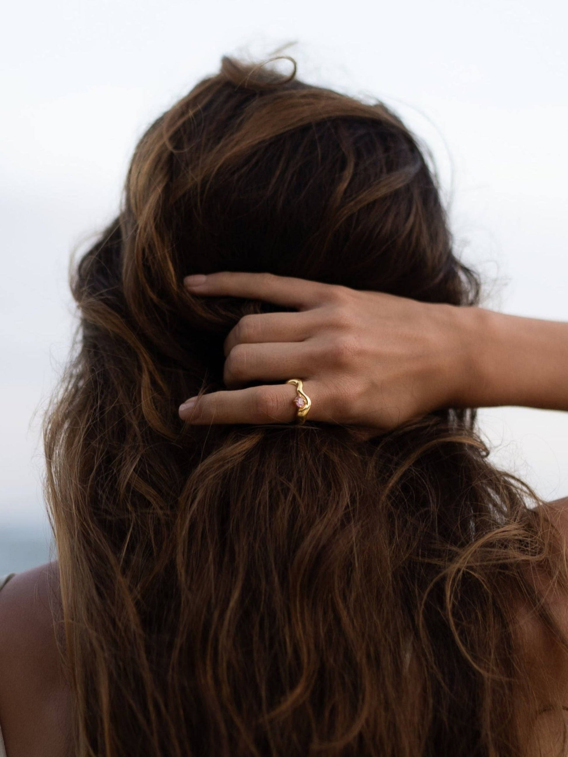 Wave Ring Gold with single pink sapphire # 19 | Size 6