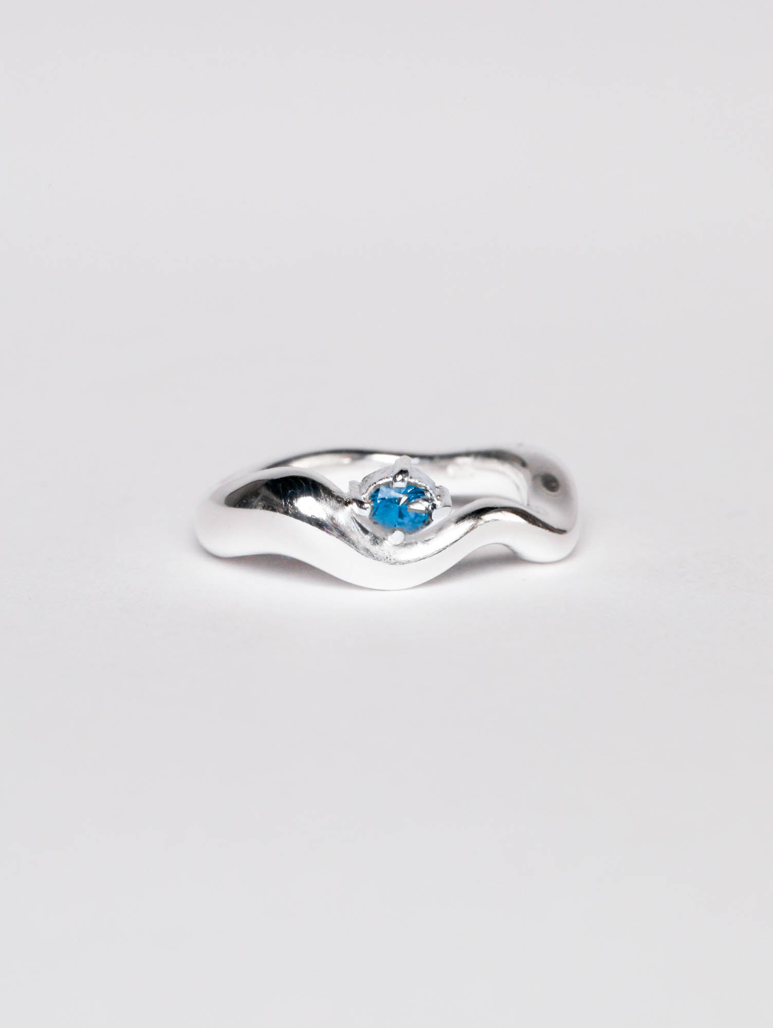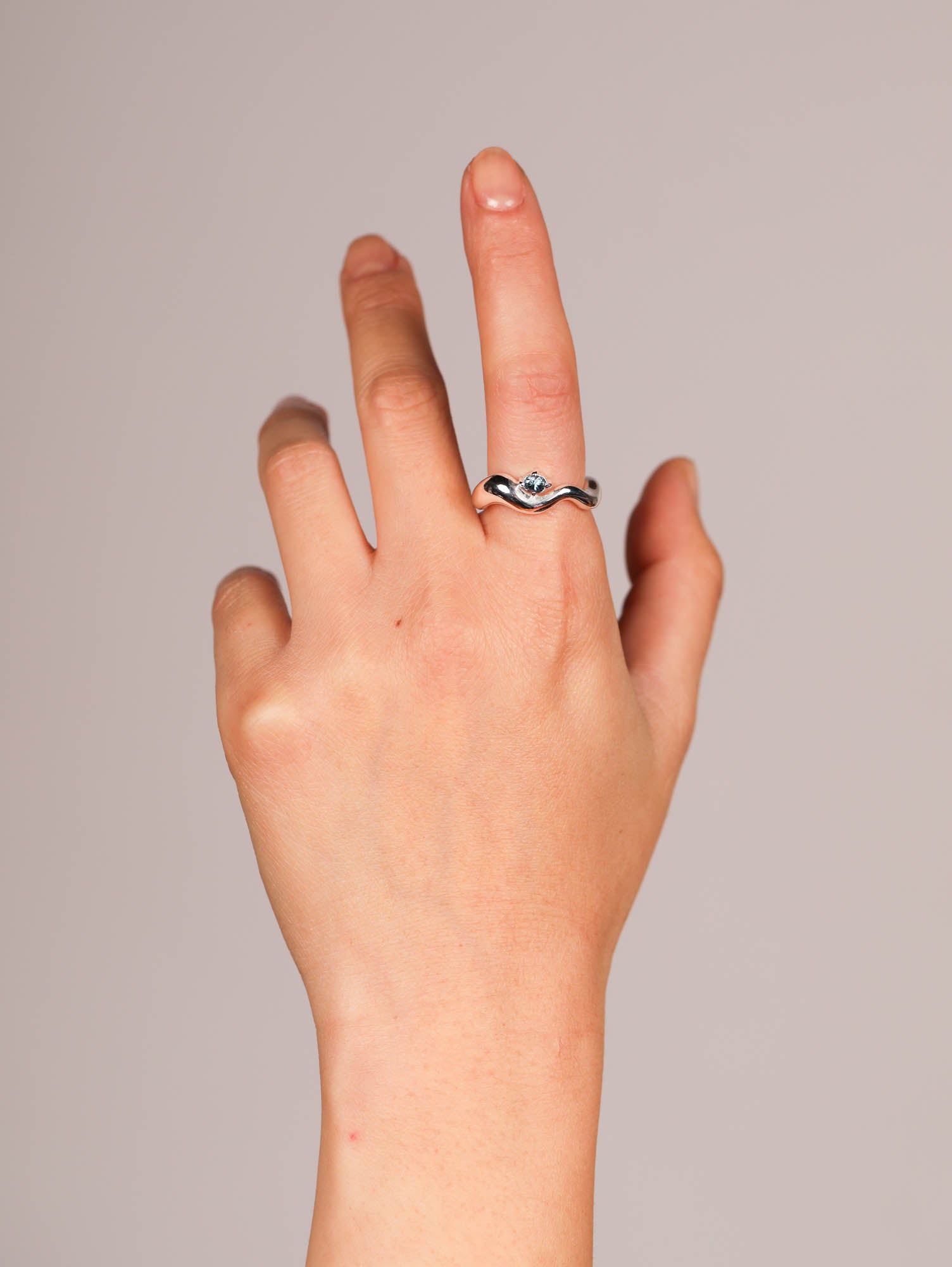 Wave Ring Silver with single Sapphire Stone # 2 | Size 6.5