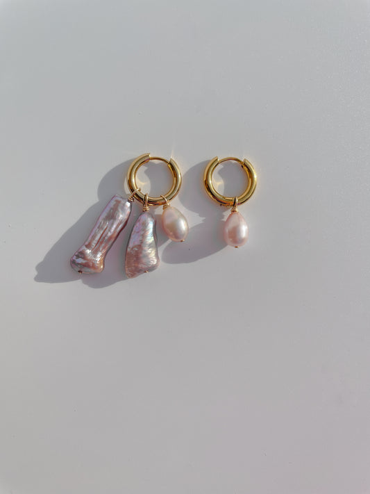 Đã bán hếtWavy Rose Quartz Pearl Drop Earrings