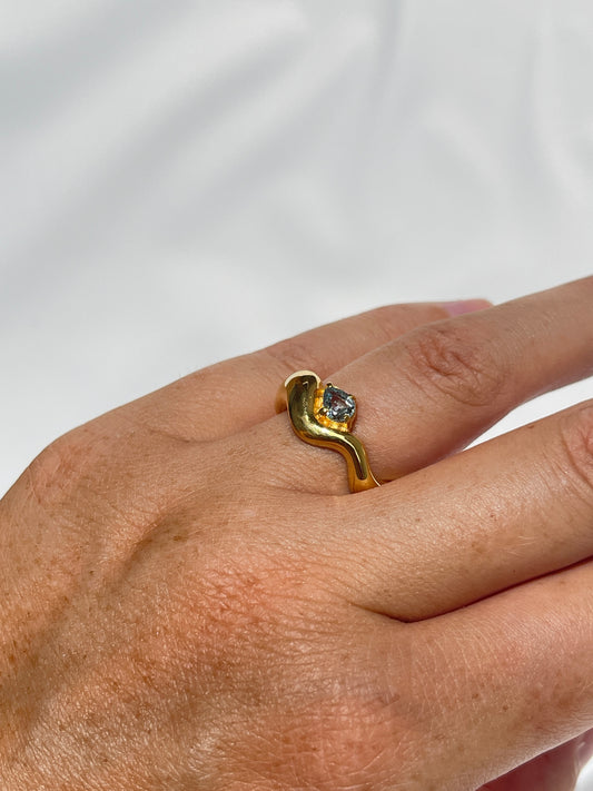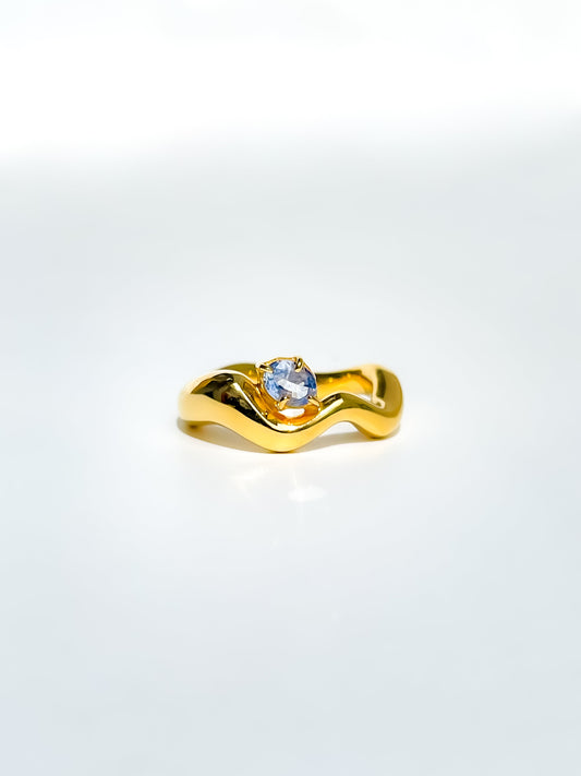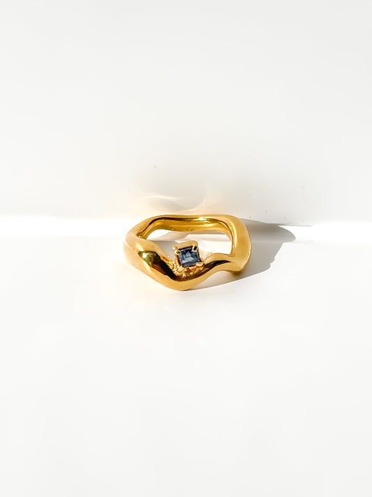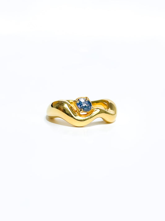 Wave Ring Gold with single sapphire # 18 | Size 8