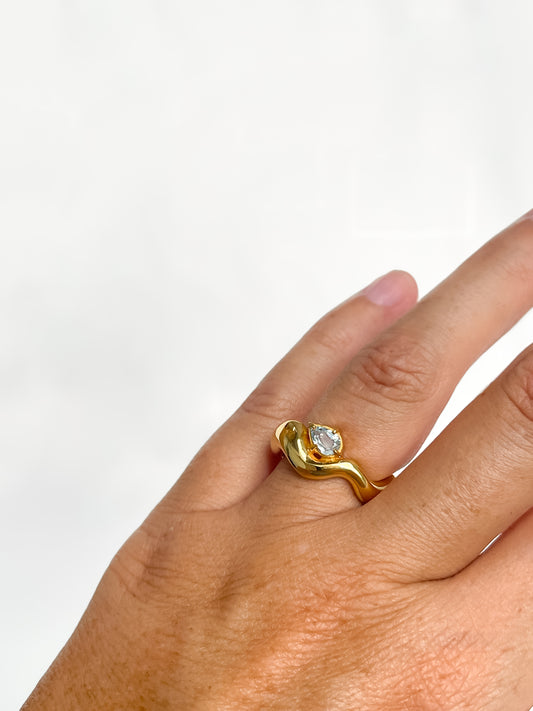 Wave Ring Gold with single Pear Aquamarine # 9 | Size 6
