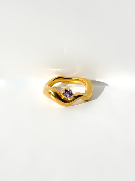 Wave Ring Gold with single Purple Sapphire # 10 | Size 6