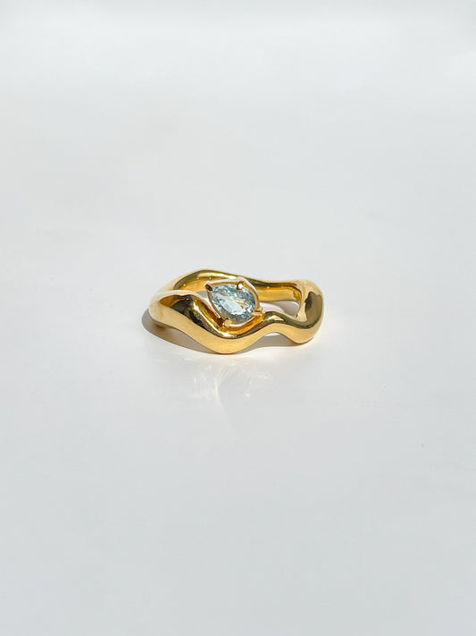 Wave Ring Gold with single Pear Aquamarine # 13 | Size 7