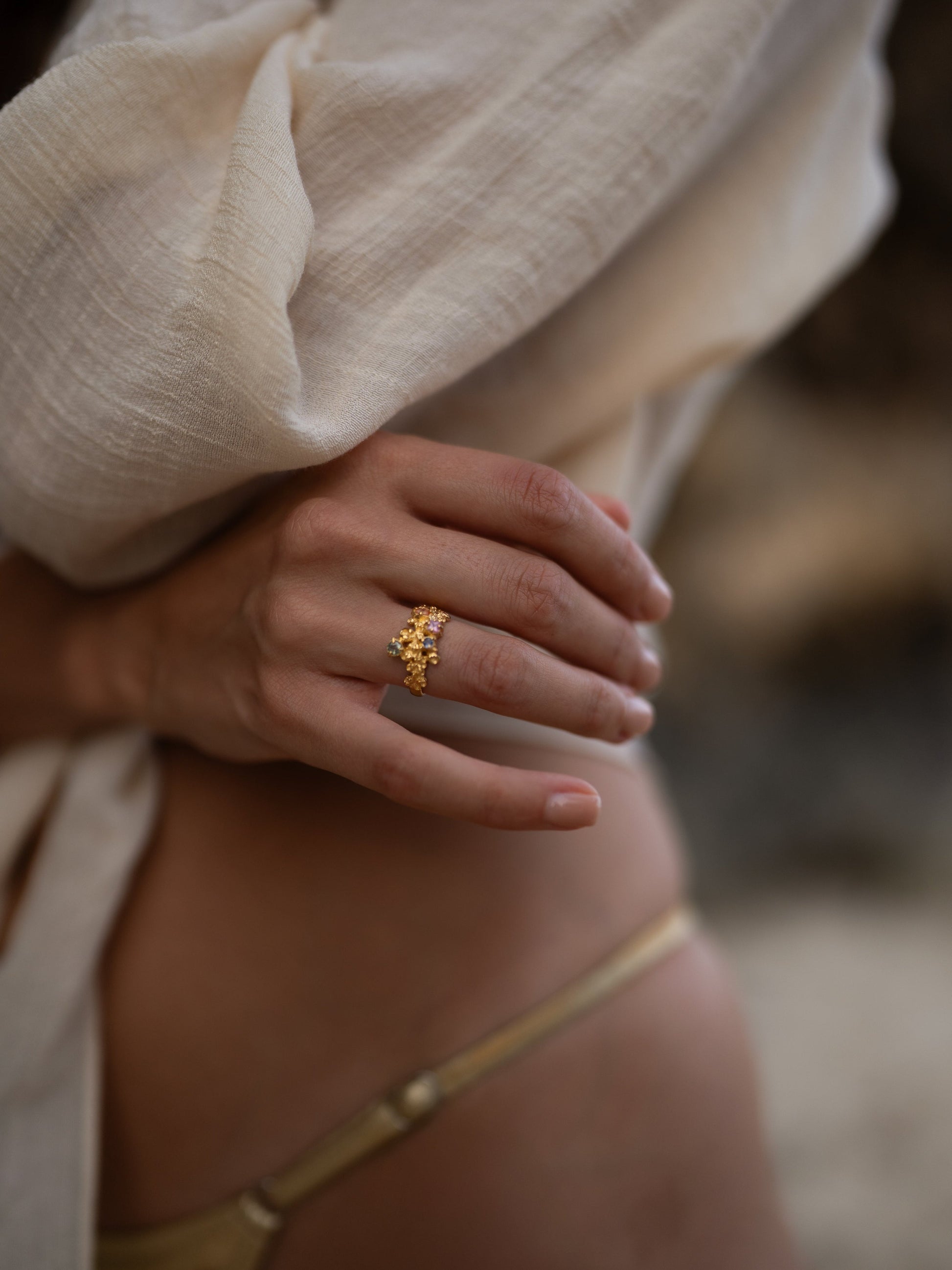 Coral Ring Gold #12 with candy coloured Sapphires - size 6