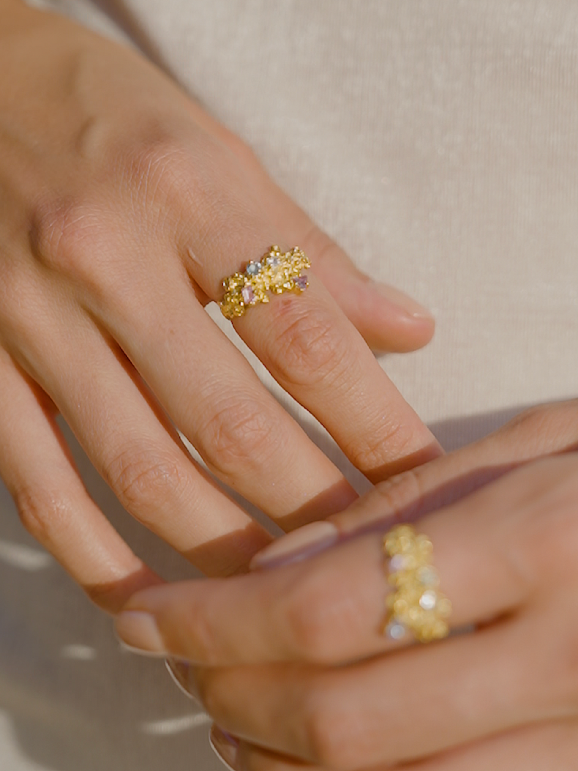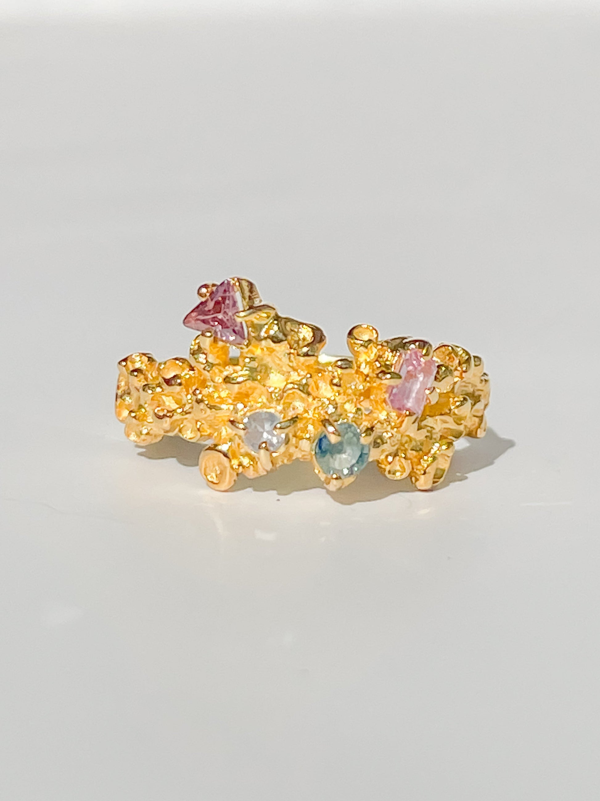 Coral Ring Gold #18 with candy coloured Sapphires - size 7